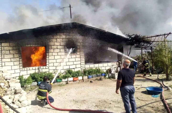 Hatay'ın Kırıkhan ilçesinde bulunan tek katlı müstakil meskende çıkan yangın, itfaiye takımları tarafından denetim...