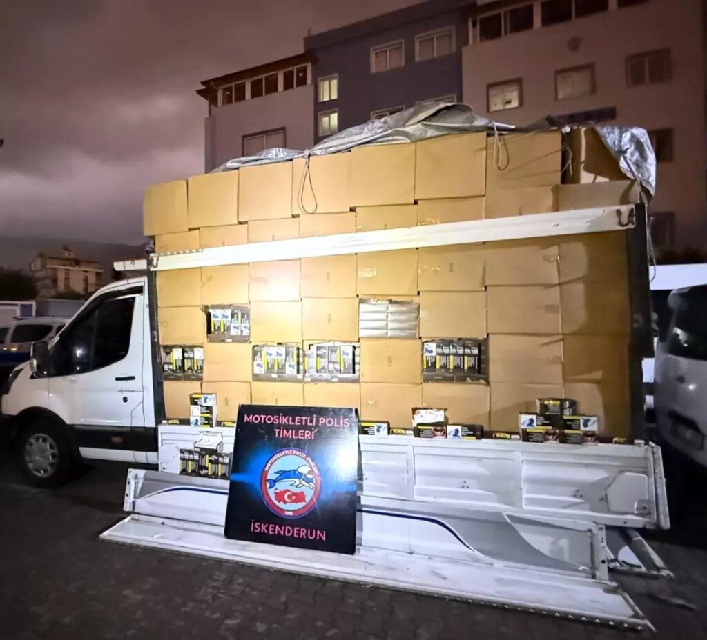 Hatay’ın İskenderun ilçesinde polis takımları tarafından 2 milyon 900 bin adet makaron ele geçirildi.