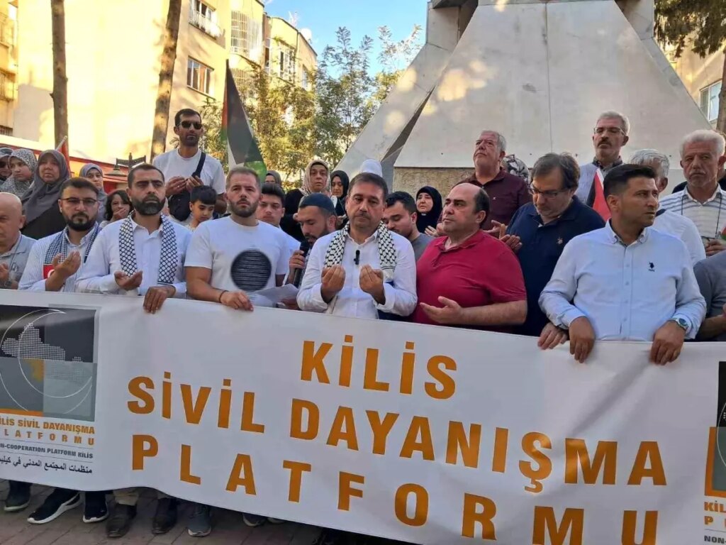 Kilis Şehitler Parkı’nda Gazze‘de hayatını kaybedenler için Kur’an-ı Kerim okunup dualar edildi. Programda konuşan Bekir Şen, Gazze‘de iki yıldır devam eden abluka ve taarruzların artık soykırım boyutuna ulaştığını söyledi. Gazze‘ye insani yardım ulaştırmak için oluşturulan Küresel Sumud Filosu’na da değinen Şen, 44 ülkeden yüzlerce aktivistin ve 80’i aşkın gemi ile yelkenlinin katıldığı filonun 31 Ağustos’ta Barcelona’dan hareket ettiğini, İtalya, Yunanistan ve son olarak Tunus’tan iştiraklerle yoluna devam ettiğini aktardı. Gazze‘de yaklaşık iki milyon insanın açlıkla karşı karşıya bırakıldığını belirten Şen ” Gazze‘de yaşanan durum tahammül sonlarını çoktan geride bırakmıştır. Açıkça soykırım işlenirken sivil halka yönelik abluka ile Gazze halkı açlığa mahkum edilmekte, milletlerarası sistemler da bu durumu kıtlık olarak isimlendirmektedir” dedi.