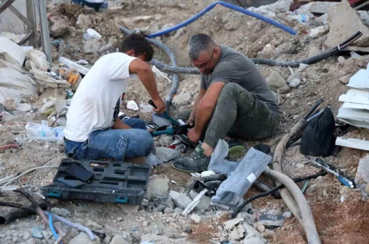 Hatay'ın Antakya ilçesinde bir şantiyede iş makinesinin toprağa gömülü elektrik kablosuna ziyan vermesi sonucu...