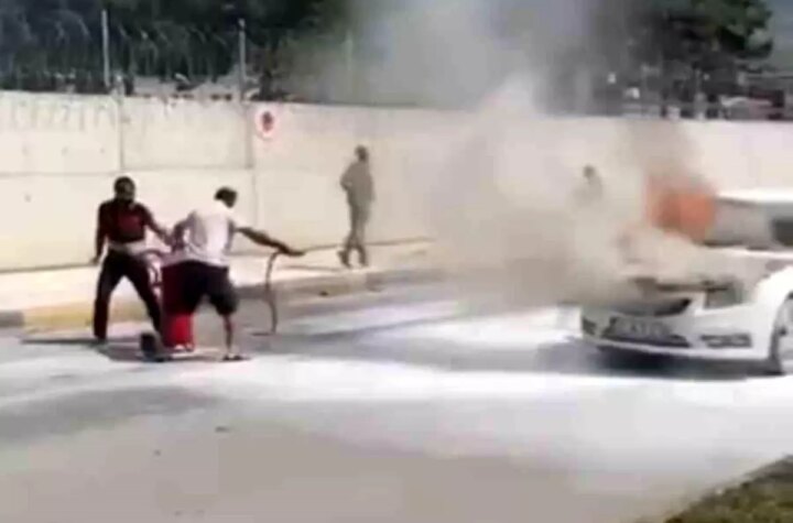 Hatay'ın İskenderun ilçesinde seyir halinde alev alan araba, etraftaki vatandaşların müdahalesiyle kısa müddette denetim...