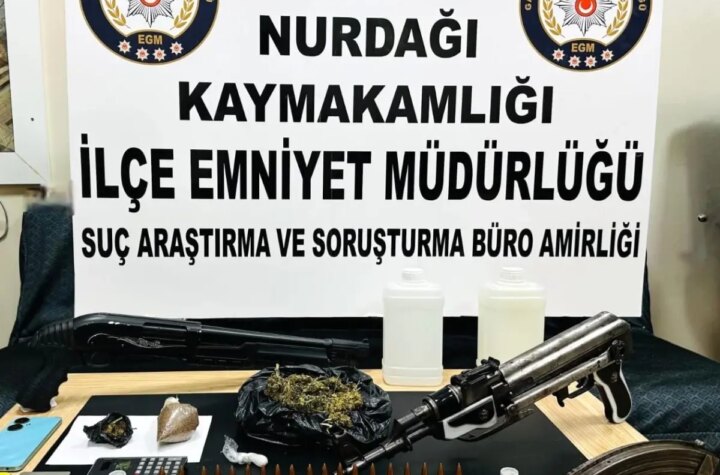 Gaziantep'in Nurdağı ilçesinde düzenlenen operasyonda, bir şüphelinin konutunda silah ve uyuşturucu husus ele geçirildi....