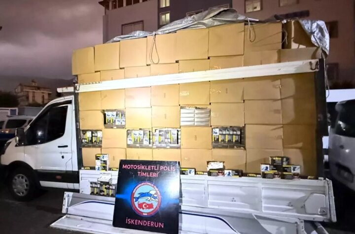 İskenderun'da polis takımları, yapılan kaçakçılık operasyonunda 2 milyon 900 bin adet bandrolsüz makaron ele...