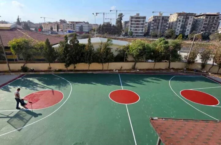İzmir Arama Kurtarma Derneği (İZAKUT) gönüllüleri, Hatay'ın Defne ilçesindeki Sümerler Ortaokulu'na bir voleybol ve...