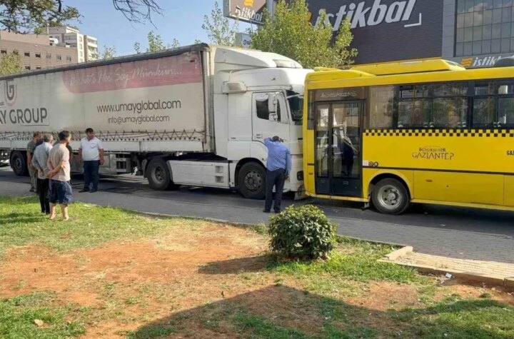 Gaziantep'te meydana gelen kazada TIR, yolcu almakta olan özel halk otobüsüne geriden çarptı. Kazada...