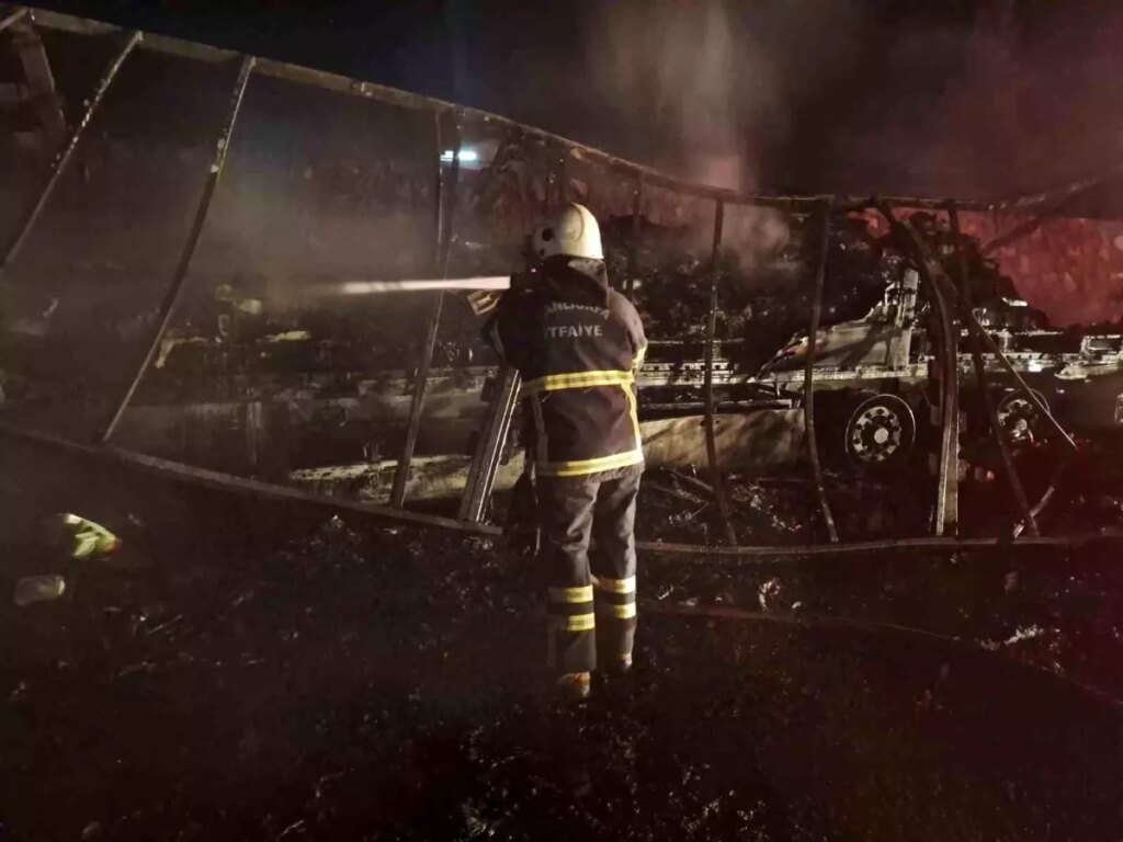 Edinilen bilgiye nazaran yangın, Şanlıurfa – Gaziantep Otoyolu’nun 70’inci kilometresinde meydana geldi. Seyir halindeki Bünyamin Ö. yönetimindeki 27 AGV 738 plakalı tır, şimdi bilinmeyen bir nedenle yanmaya başladı. Şoförün yol kenarına çektiği tır, kısa müddette alev topuna döndü. İhbar üzerine olay yerine giden itfaiye grupları, yangına müdahale ederek denetim altına aldı. Yangın sonrası memleketler arası nakliyat yaptığı belirlenen tır, hurda yığınına döndü. Jandarma grupları olayla ilgili inceleme çalışması başlattı.