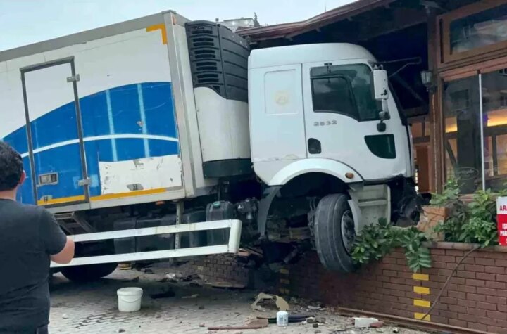 Hatay'ın Belen ilçesinde freni arızalanan tır, park halindeki vidanjöre çarptıktan sonra bir iş yerine...