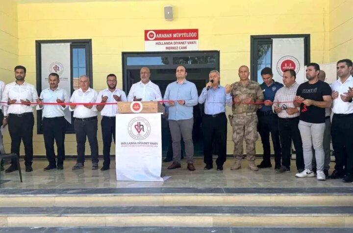 Kahramanmaraş merkezli sarsıntılardan etkilenen Gaziantep'in Araban ilçesinde, yine inşa edilen Merkez Camii açılışı kurdele...